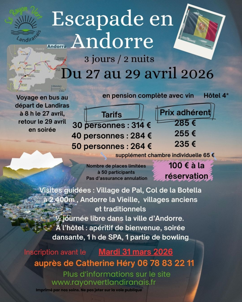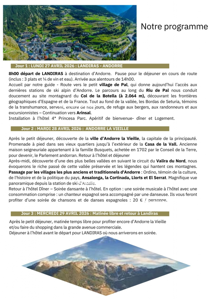 Le Rayon Vert vous propose un séjour de 3 jours / 2 nuits en Andorre du 27 au 29 avril 2026.